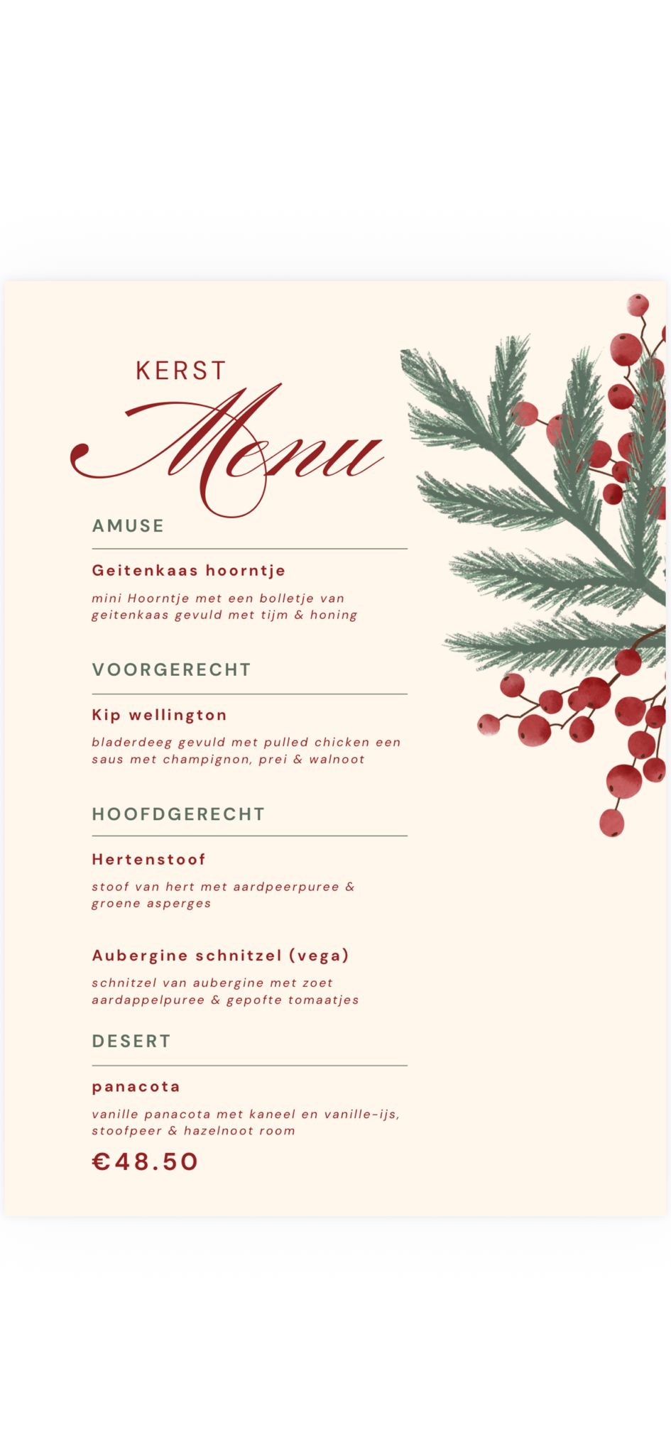U kunt op de avond zelf kiezen voor welk menu u gaat.